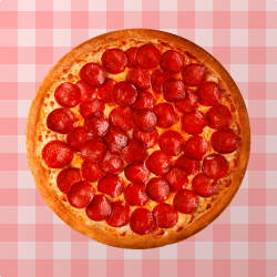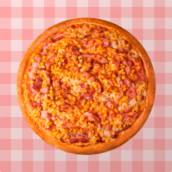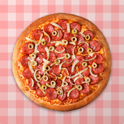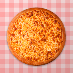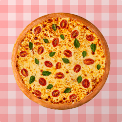 Exclusiva mussarela servida sobre molho de tomate especial.